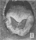 图1 男,35岁。舌背前1/3深溃疡,表面有灰白色假膜,周缘呈白色,基底无浸润。