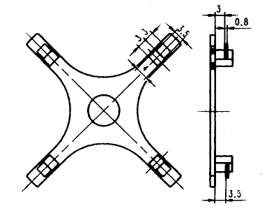 在固定矫治中用托槽定位器来确定托槽位置的高度,通常使用的 托槽定位器利用其尖状指针样结构定位,与托槽为点接触,在粘接定位时难以稳定地完成双 翼托槽的定位,加压时又易使托槽扭动移动,即费时又影响定位的准确性,鉴于此,作者将 其改进制为矩形薄片状结构进行定位,其与槽沟为线接触(见附图)。