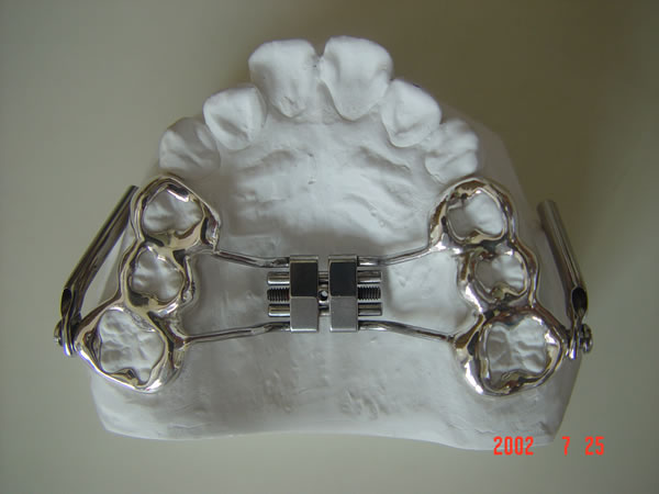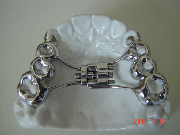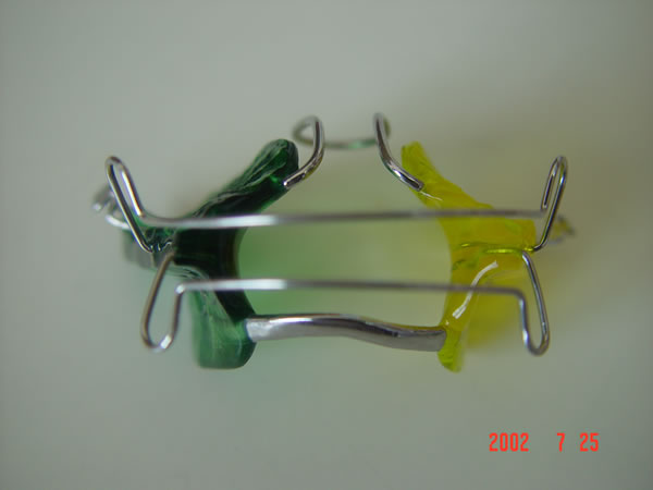 1、活动矫治器? 矫治器是一种治疗错合畸形的装置,或称正畸矫治器。它可产生作用力,或由咀嚼肌口周肌功能作用力藉矫治器使畸形的颌骨、错位牙齿及牙周支持组织发生变化,以利于牙颌面正常生长发育。活动矫治器是一种由患者自行摘戴的矫治装置,因而又称可摘矫治器。它是由基托、固位体、各种弹簧所组成。使用活动矫治器必须严格选择适应证,认真加力,患者合作才能保证疗效。